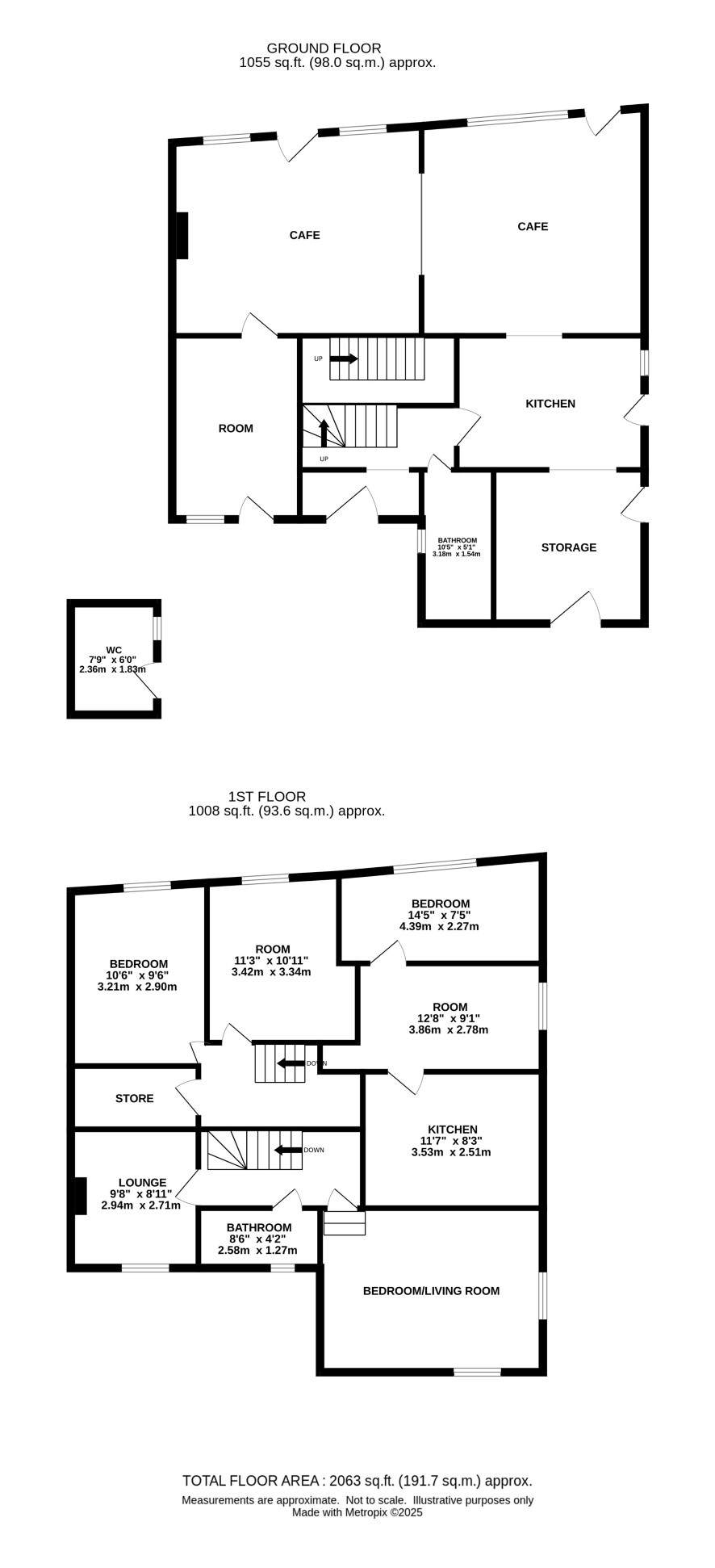 Five rooms (two interconnect), sitting room, shower room, kitchen, two staircases to ground floor