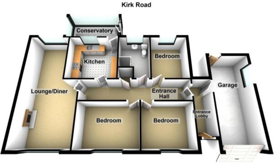 Entrance hall, lounge/ dining room, kitchen, conservatory/ utility room, three bedrooms, shower room