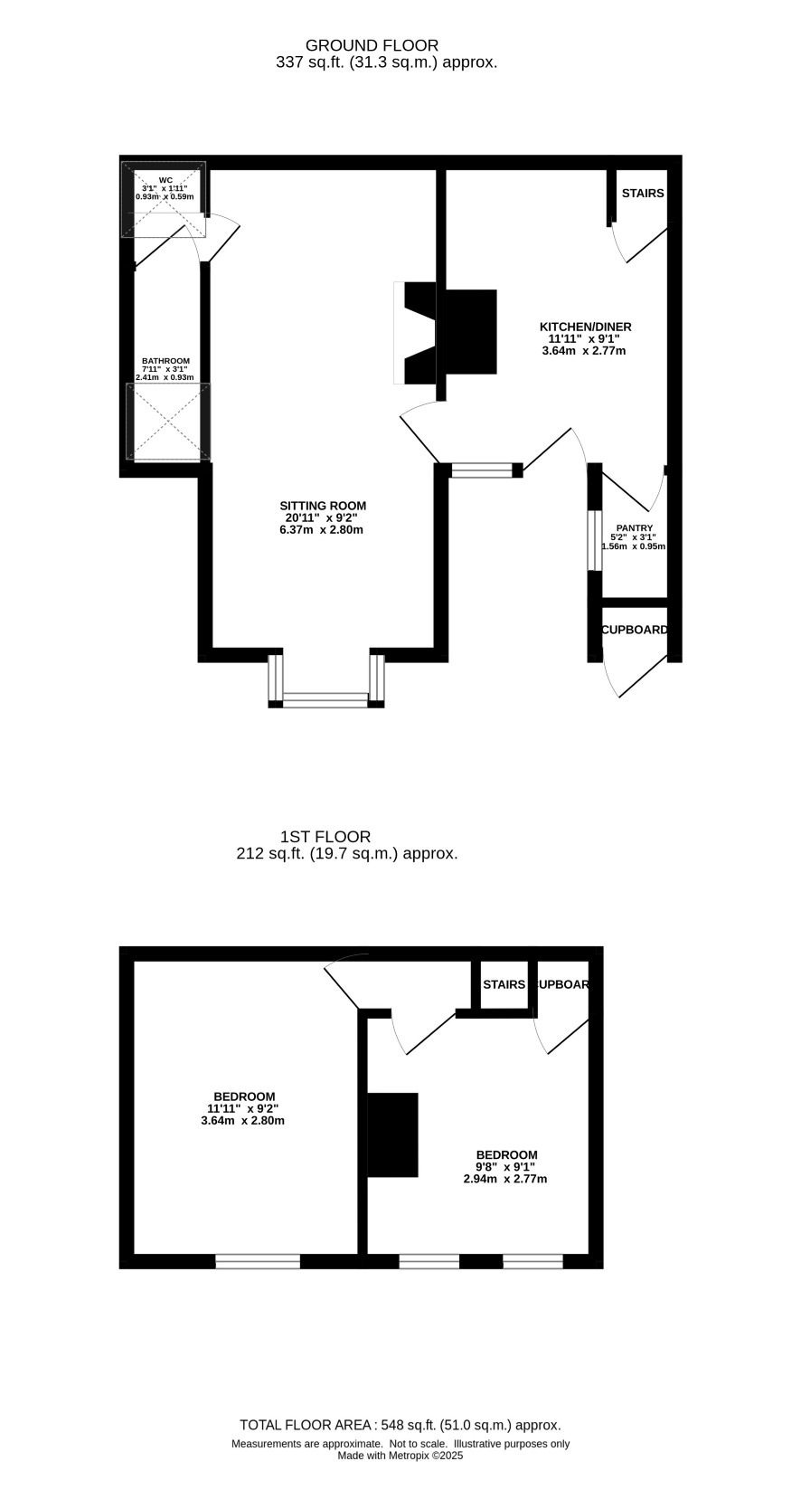Kitchen, pantry, sitting room, wc, bathroom