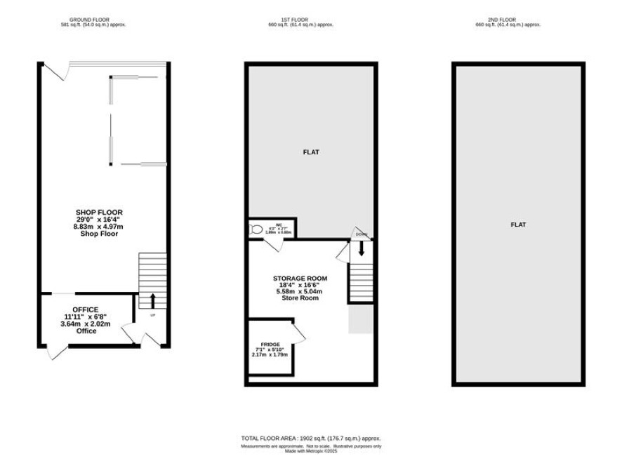 Ground floor: retail area, kitchenette / storage First floor: commercial storage and wc