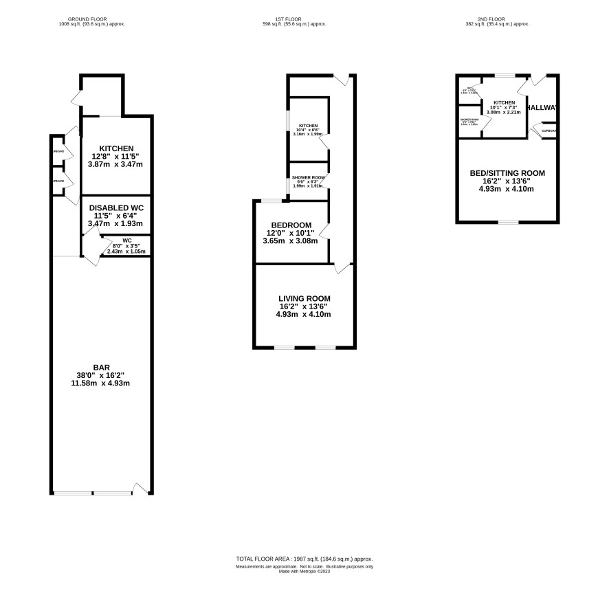 Situated in the heart of this Suffolk Coast town is this freehold licenced bar with two independently accessed flats above. The cafe/bar premises extends to approximately 1,000 sq/ft (93.6 sq/m) with space for around 40 covers, planning has also been approved for pavement tables and is just awaiting Highways approval. The first floor flat is newly refurbished and ready for immediate occupation, it has been let as an Airbnb on a part time basis over the last 18 months generating £20,000 of income which could easily be enhanced further or tenanted on a standard AST for a fixed term. The second floor studio flat is currently let on a periodic AST to a long-standing tenant at a current rent of £707 per calendar month (£8,484 per annum) increasing to £770 per calendar month (£9,240 per annum) in May 2025. It is considered the premises as a whole could generate a rental income of £40,000+ per annum giving well over 10% annual yield making this an unmissable investment opportunity.