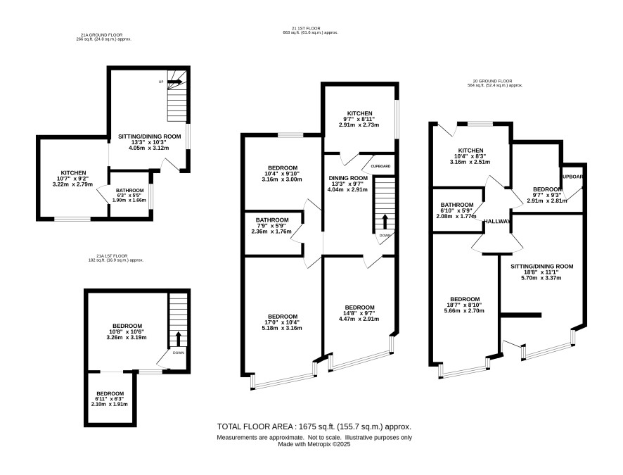 First Floor: Two bedrooms, bathroom, kitchen, sitting room, dining room