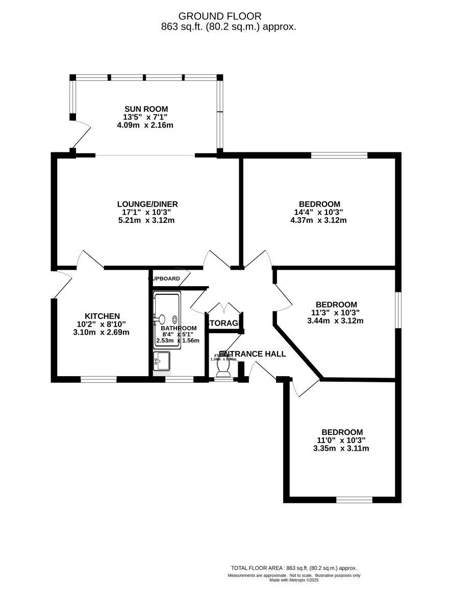 Entrance hall, cloakroom, lounge/diner, sunroom, kitchen, three bedrooms, shower room.