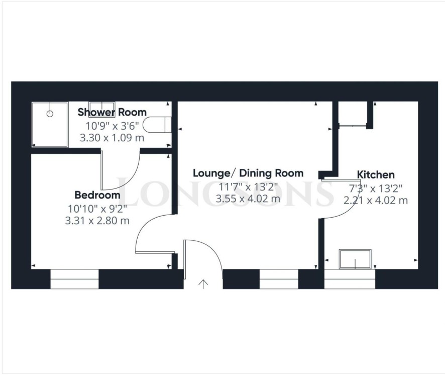 Lounge, kitchen, bedroom, shower room