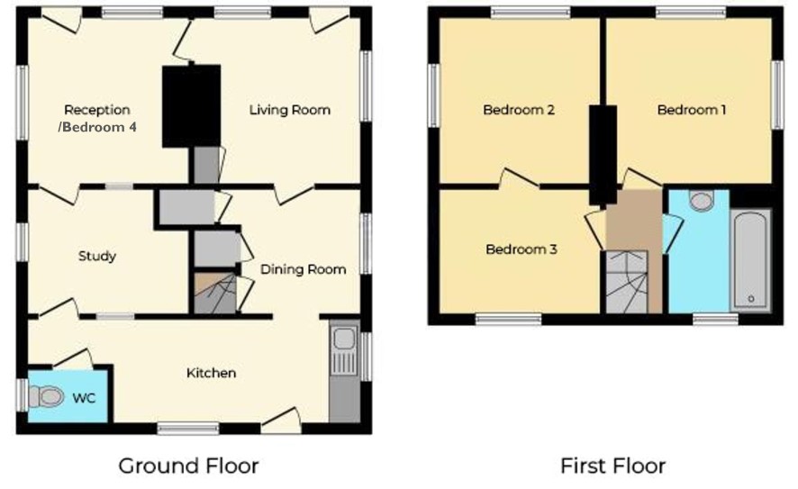 Living room, dining room, reception room, downstairs w.c, kitchen
