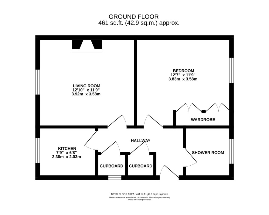 Communal hallway, entrance hall, shower room, kitchen, living room ,bedroom