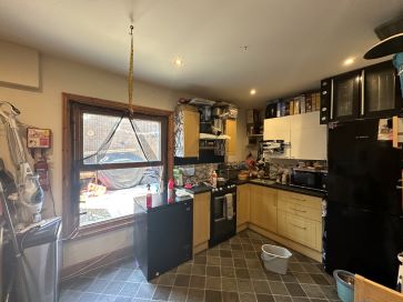 Sitting room, kitchen, one bedroom, bathroom