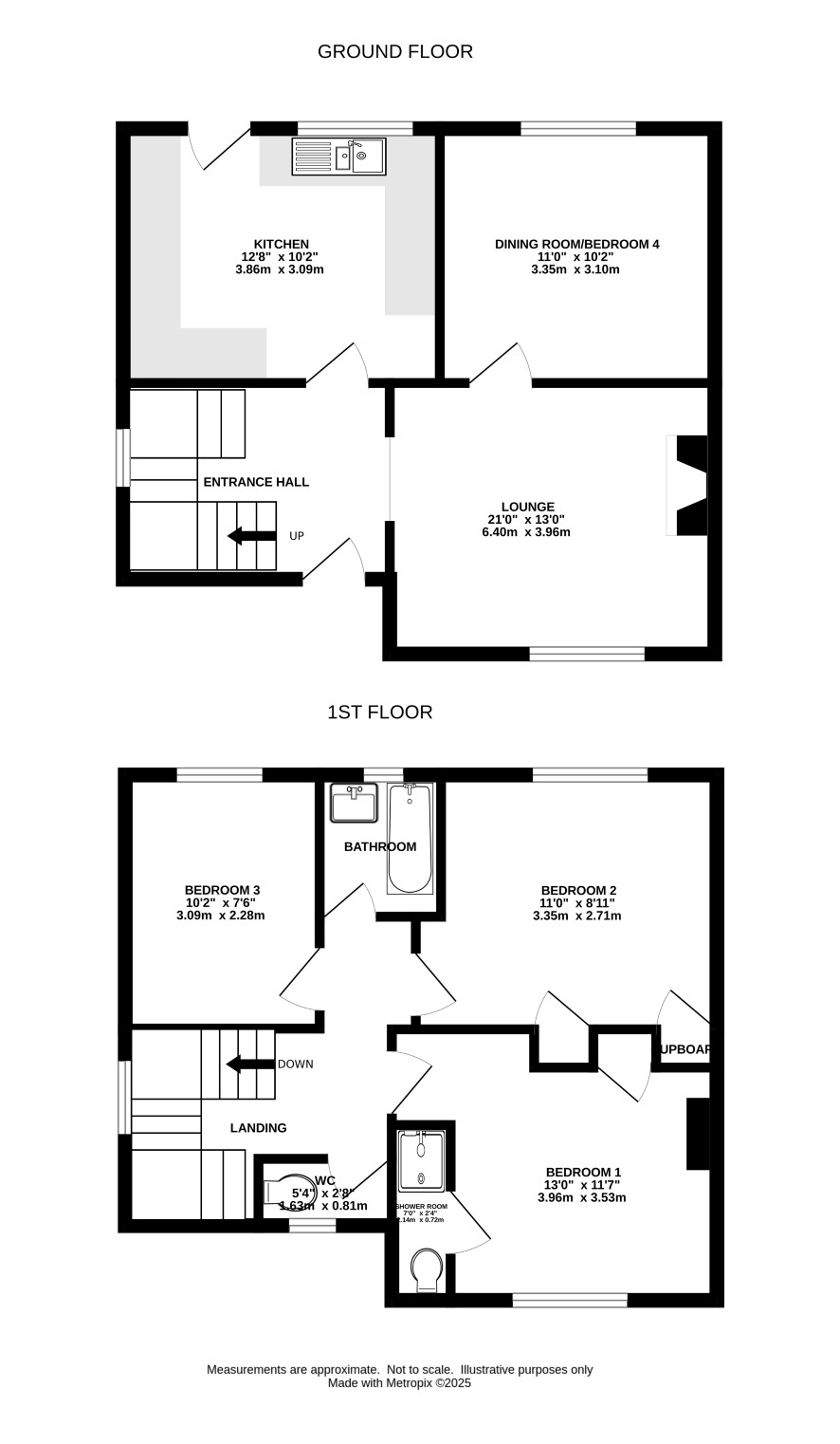 Landing, bedroom 1 with ensuite shower room, two further bedrooms, bathroom, separate wc.