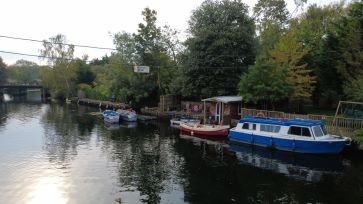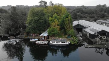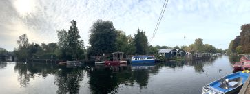Mooring plot on Thorpe Island in picturesque spot with stunning views over the River Yare in Norwich. With houseboat, bungalow, decked 10 metre quay head mooring, slipway, shepherd's hut and further outbuildings.
