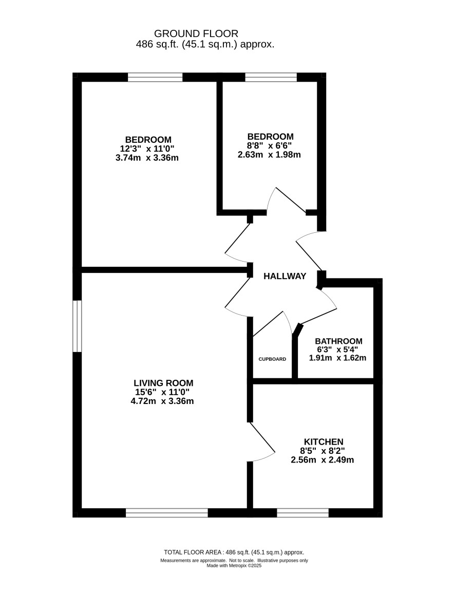 Communal Entrance Door Communal hallway Personal door to Entrance Hall 6' x 4'3" Lounge 15'5" x 11' Kitchen 8'4" x b'2" Bedroom 1 12'3" x 9' Bedroom 2 8'8" x 6'6" Bathroom/WC 6'3" x 5'2"