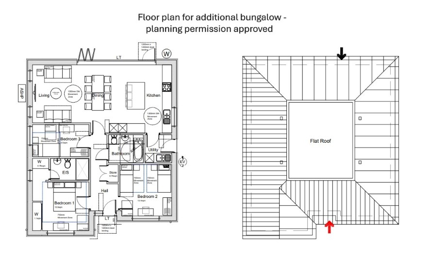 A two bedroom detached bungalow set in 0.36 of an acre (stms) with planning consent for two additional bungalows