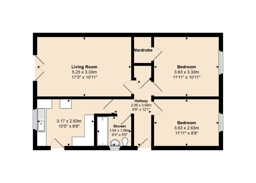 Hall, living room, kitchen, two bedrooms, garden room/conservatory, shower room