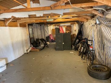Mainly timber garage workshop. 16m x 4.1m max, side parking space and further garden area to rear.