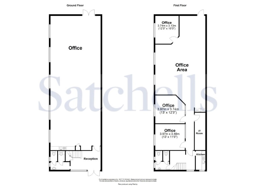 This property is suitable for owner occupation, investment, or potential division into separate ground and first-floor offices. The ground floor features an open-plan office extending from the reception area (approx. 57’ x 22’3”), incorporating recesses and a fitted kitchen area. Double rear doors provide convenient access for loading and unloading. A welcoming reception area to the front includes a staircase leading to the first floor, together with ladies’ and gents’ WC facilities. The first floor offers a further three private offices—approximately 13’ x 11’5”, 13’ x 12’3” (max), and 10’3” x 12’3” (max)—along with a kitchen off the landing, additional toilet facilities on the half-landing, and a comms cupboard. A rear fire escape provides external access. Presented in very good order throughout, the property benefits from modern facilities and infrastructure, making it ideal for a range of professional or administrative uses.