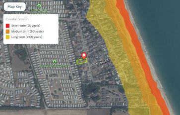 Located near the coast in Hemsby, Norfolk an area being monitored for coastal erosion. This property is on the Fakes Road area on the row of houses furthest from the sea. Please see the illustration of projected coastal change based on latest datasets supplied by the Environment Agency (England and Wales) as at 17 January 2026. Buyers to make own enquiries.