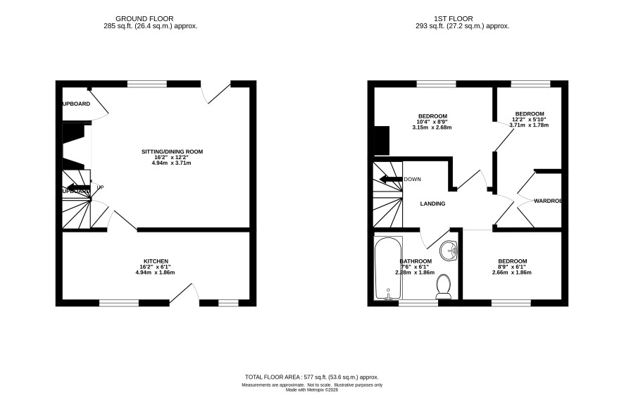 Ground Floor: Hall, sitting room, kitchen First Floor, landing, three bedrooms, bathroom