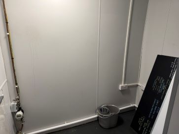 Chip shop, store room, kitchen and hall to side access.