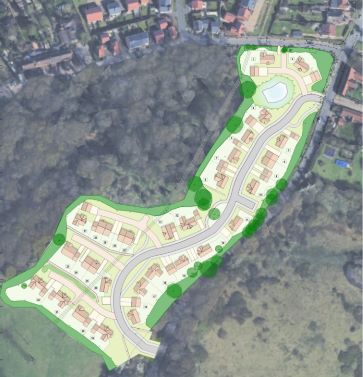 An architect-led illustrative layout has been prepared to demonstrate how residential development could be accommodated in a comprehensive and landscape-led manner. The concept focuses development on the most suitable areas of the site, retaining steeper landform as landscape, open space and ecological buffer. The illustrative scheme indicates potential capacity for up to 31 dwellings, comprising a balanced mix of 2-4 bedroom dwellings. The layout is illustrative only and allows flexibility for an incoming purchaser to refine and progress a buyer-led scheme through the planning process.