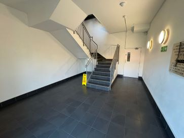 Communal door with foyer leading to lift or staircase