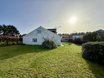 Gated entrance with space for off road parking. The property benefits from front, side and rear garden enjoying field and sea views beyond. Within the garden there is a large timber outbuilding and timber shed.
