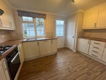 The home itself is well presented throughout with a modern layout. The Open plan lounge/dining room is bright and airy and the modern kitchen has integrated appliances and space for a small table. Both bedrooms are doubles with bedroom two having built in wardrobes and bedroom one has a walk in wardrobe and ensuite shower room. The family bathroom is modern with a stylist design. Outside the home sits in the middle of the plot which is close to the gated entrance and has a parking space, lawned garden areas and space for a shed for storage. The park is for owners and occupiers of 45 years and above and pets are allowed on site which is in a idyllic setting surrounded by fields with good transport links into nearby Thetford and to the A11 into Norwich and Cambridge.