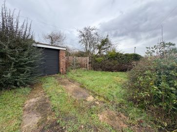 Off road parking, front side and rear garden in need of attention, detached garage, timber shed