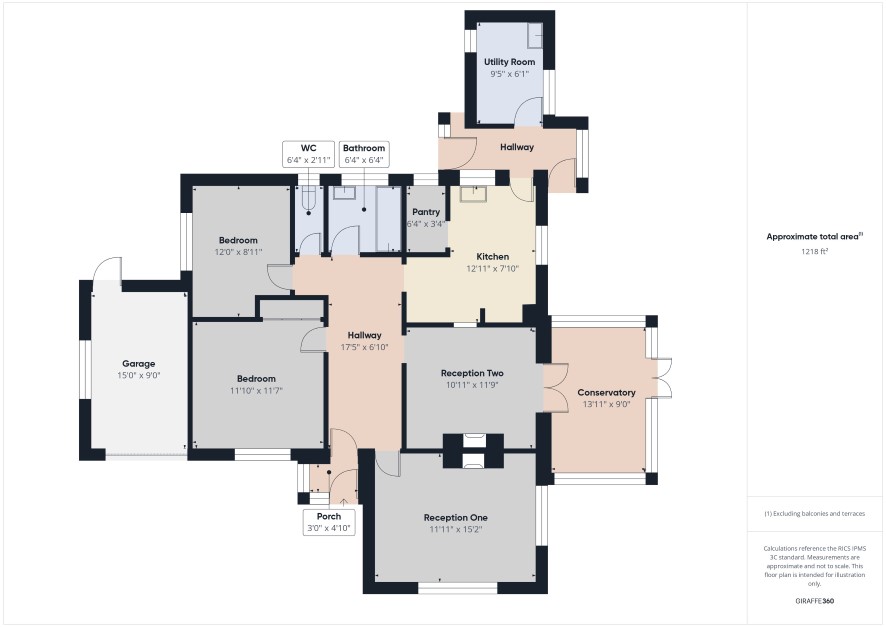 Entrance hall, sitting room, kitchen, two bedrooms, bathroom and conservatory.