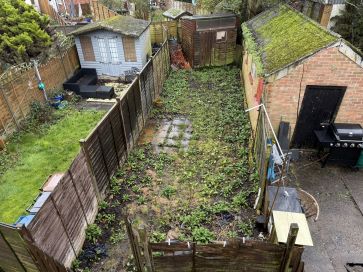 Bisected rear garden.