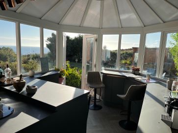 Covered porch, entrance hall, sitting room, dining room, kitchen and conservatory.