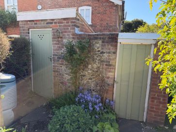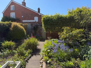 Mature South West facing rear cottage style garden. Patio area along with two brick-built storage sheds.