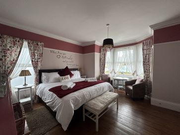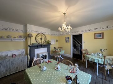 Entrance hall, guest bedroom with ensuite, two dining areas, a further bedroom with ensuite and patio doors with own entrance and private seating area, guest sitting room with staircase to private room for manager, well equipped kitchen