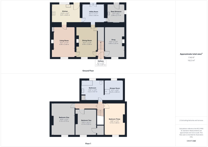 Entrance Hall With staircase to the first floor. Sitting Room 16' 1'' x 10' 10'' (4.9m x 3.3m) With an open fire with timber surround and brick insert. Picture rail, sash window to the front and a radiator. Dining Room 16' 1'' x 10' 10'' (4.9m x 3.3m) With open fire with stone surround, coving to the ceiling, understairs storage cupboard, sash window to the front and a radiator. Living Room 16' 1'' x 12' 2'' (4.9m x 3.7m) With open fire with stone surround and hearth, coving to the ceiling, telephone point, two wall light points, sash window to the front. Dining Kitchen 14' 5'' x 9' 10'' (4.4m x 3.0m) Fitted with a range of kitchen units incorporating a single drainer sink unit and microwave. Oil-fired, two oven Rayburn. Loft hatch giving access to a loft room (former bedroom). Door and casement window to the rear. Pantry 11' 10'' x 9' 6'' (3.6m x 2.9m) With French doors to the rear. and fitted shelving. Rear Lobby / Boot Room 9' 6'' x 9' 2'' (2.9m x 2.8m) With door to the rear. Porthole window to the side., low flush WC and wash basin.