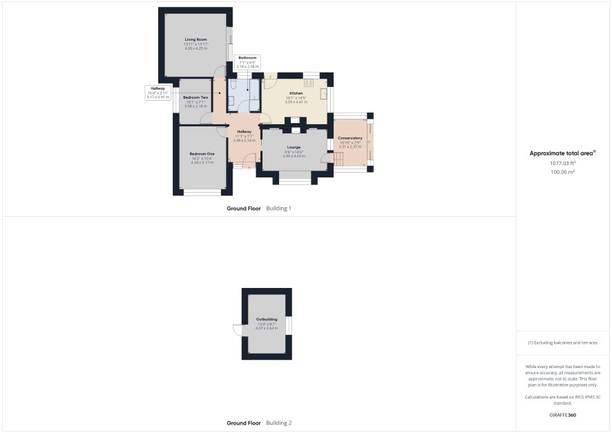 ENTRANCE HALL- 11'1" (3.38m) x 7'1" (2.16m) Door and window to the front aspect, panelled walls, stone flooring, radiator and power points. LOUNGE- 9'6" (2.90m) x 14'6" (4.43m) Window to the front aspect, panelled walls, stone fireplace with open fire, wooden flooring, radiator and power points. CONSERVATORY- 10'10" (3.31m) x 7'9" (2.37m) Sliding doors to the side aspect, windows to all three sides, tiled flooring and power points. KITCHEN- 10'1" (3.09m) x 14'5" (4.41m) Door and window to the rear aspect, additional window to the side, exposed beams, wall mounted gas boiler, open fireplace with brick surround, tiled splash back, a range of wall and base units, sink with drainer unit, plumbing for washing machine and dishwasher, electric oven, gas hob, tiled flooring, radiator and power points. LIVING ROOM- 13'11" (4.26m) x 13'11" (4.25m) Sliding doors to the side aspect, coving, picture rail, dado rail, marble fireplace with surround, wood flooring, radiator and power points. BEDROOM ONE- 14'2" (4.34m) x 10'4" (3.17m) Window to the front aspect, coving, built in wardrobes and drawers with dressing table, laminated flooring, radiator and power points. BEDROOM TWO- 10'1" (3.08m) x 7'1" (2.18m) Window to the side aspect, coving, dado rail, fitted carpets, radiator and power points. BATHROOM- 7'1" (2.18m) x 6'9" (2.06m) Opaque window to the rear aspect, fully tiled walls, built in storage, three piece bathroom suite comprising:- low flush WC, sink with pedestal, corner bath with over head shower, tiled flooring and radiator.