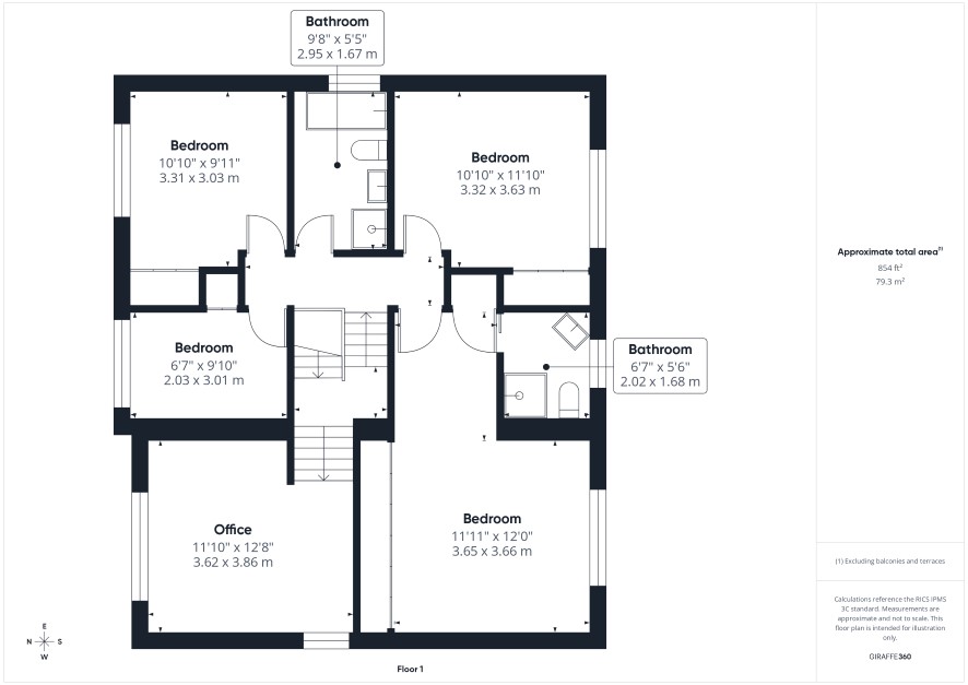 Central landing leading to: Office - 11'10" x 12'8" (3.62m x 3.86m) Wood panelling to one wall. Radiator. Bedroom One - 11'11" x 12'0" (3.65m x 3.66m) Fitted wardrobes. Radiator. Storage cupboard. En Suite - 6'7" x 5'6" (2.02m x 1.68m) Three piece bathroom suite comprising:- low flush WC, sink with pedestal and mixer tap, shower unit. Radiator. Bedroom Two - 10'10" x 11'10" (3.32m x 3.63m) Storage cupboard. Radiator. Bedroom Three - 10'10" x 9'11" (3.31m x 3.03m) Storage cupboard. Radiator. Bedroom Four - 6'7" x 9'10" (2.03m x 3.01m) Radiator. Bathroom - 9'8" x 5'5" (2.95m x 1.67m) Four piece bathroom suite comprising:- low flush WC, sink, shower unit, bath. Radiator.
