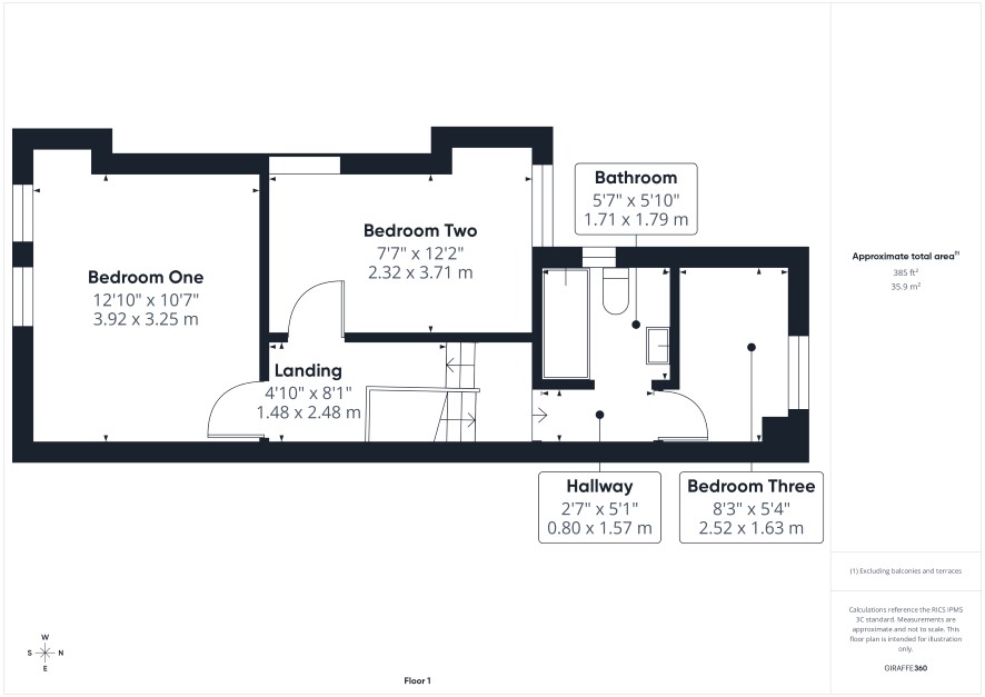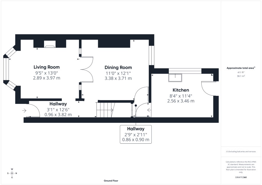 Ground Floor Entrance Hall Radiator. Living Room - 9'5" x 13'0" (2.89m x 3.97m) Window to front. Fireplace. Dining Room - 11'0" x 12'1" (3.38m x 3.71m) Understairs cupboard housing meters. Window to rear. Radiator. Kitchen - 8'4" x 11'4" (2.56m x 3.46m) Range of white gloss wall and base units with laminate worktop. Radiator. Window to side elevation. Door to outside. First Floor Central landing leading to: Bedroom One - 12'10" x 10'7" (3.92m x 3.25m) Radiator. Window to front. Bedroom Two - 7'7" x 12'2" (2.32m x 3.71m) Radiator. Window to rear. Bedroom Three - 8'3" x 5'4" (2.52m x 1.63m) Radiator. Window to rear. Bathroom - 5'7" x 5'10" (1.71m x 1.79m) Comprised of a white three-piece suite which includes: a panelled bath with a shower over, a pedestal wash hand basin and a low-level WC. Radiator. Window to side elevation.