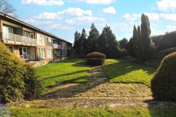 Large communal grounds include a stone paved terrace and lawn with borders. Communal car parking on private access road.
