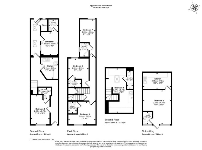 Ground Floor Communal Kitchen Two Bedrooms (Both with En-Suite) Utility Room First Floor Three Bedrooms (All with En-Suite) Second Floor Bedroom (with En-Suite) Garden Office Studio Not Inspected