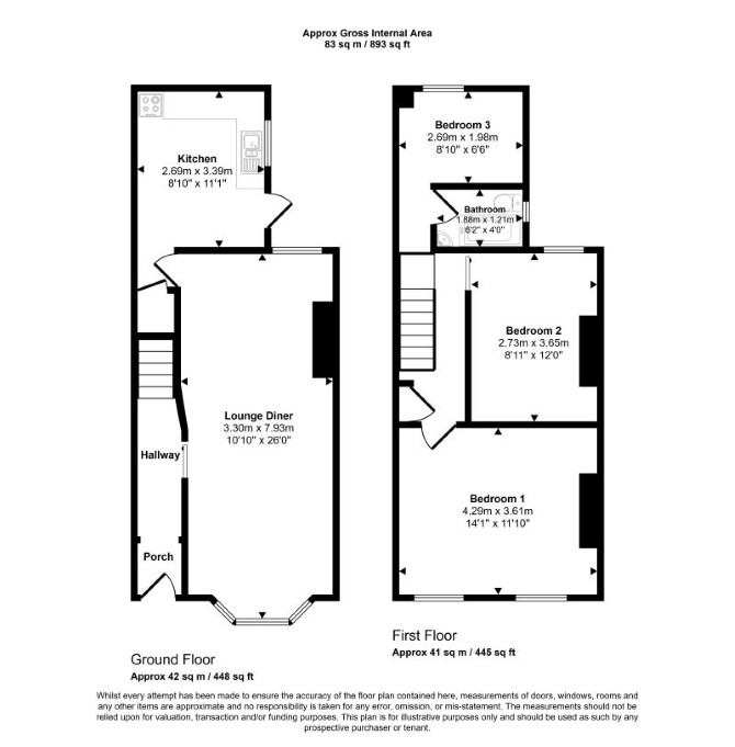 Ground Floor Through Reception Room Kitchen First Floor Three Bedrooms Bathroom