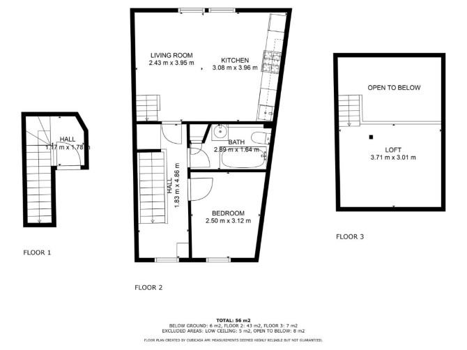 Second Floor Reception Room with Open-Plan Kitchen Bedroom Bathroom