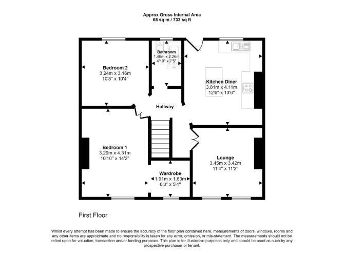 The property comprises a first floor two bedroom flat situated within a mid terrace building arranging over ground and first floors. The property requires a program of refurbishment.