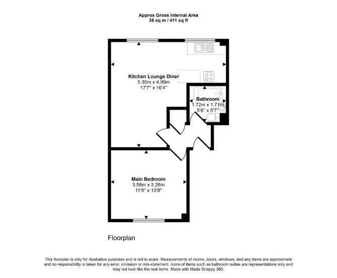 Second Floor Reception Room with Open-Plan Kitchen Bedroom Bathroom