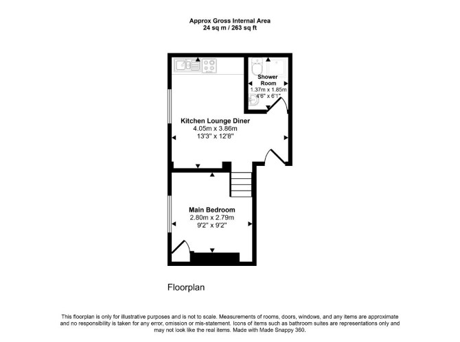 First Floor Reception Room with Open-Plan Kitchen Bedroom Bathroom