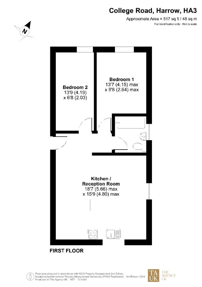 The property comprises a first floor two bedroom flat situated within an end of terrace building arranged over ground and first floors.