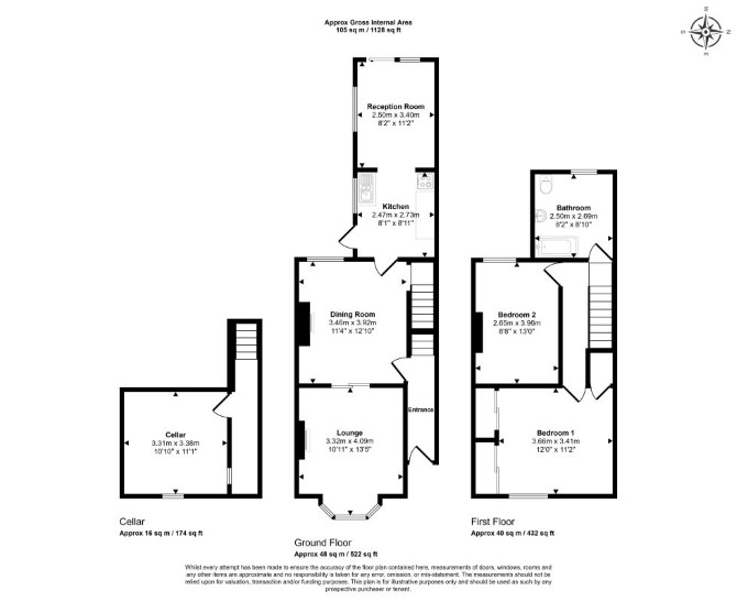 Lower Ground Floor Large Cellar Ground Floor Two Reception Rooms Kitchen/Dining Room First Floor Two Bedrooms Bathroom
