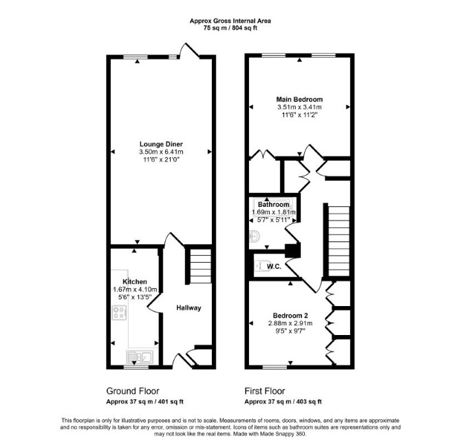 The property comprises a two bedroom mid terrace house arranging over ground and first floors.