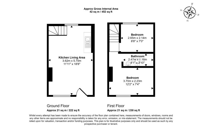 Ground Floor Reception Room with Open-Plan Kitchen First Floor Two Bedrooms Bathroom
