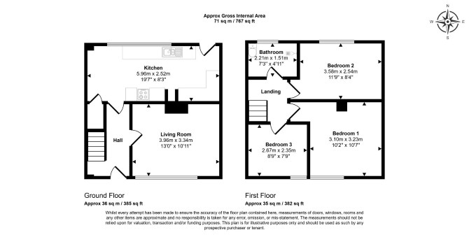 Ground Floor Reception Room Kitchen First Floor Three Bedrooms Bathroom Total G.I.A Approximately 74 sq m