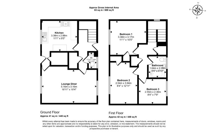 Ground Floor Reception Room Kitchen WC First Floor Three Bedrooms Bathroom