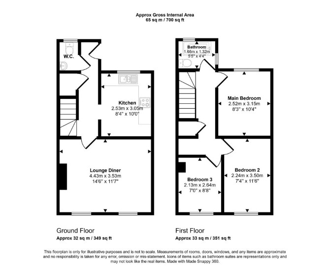 First Floor Reception Room Kitchen WC Second Floor Three Bedrooms Bathroom