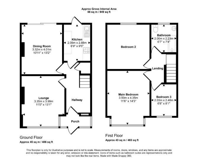 The property comprises a three bedroom mid terrace house arranged over ground and first floors.